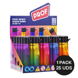 Encendedor PROF electrónico. Mecanismo fiable que garantiza encendido consistente en cada uso. Diseño ergonómico y compacto, perfecto para llevar a cualquier parte.