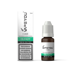 Líquido para vapeo VAPEYOU sabor Coldtasty. Formato 10ml. Nicotina: 3mg. Fórmula equilibrada que ofrece sabor intenso y producción de vapor óptima.