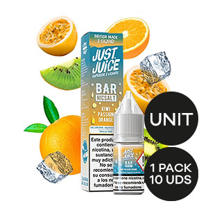 Líquido para vapeo JUST JUICE sabor Juice bar con sales de nicotina para absorción suave. Formato 10ml. Nicotina: 10mg. Fórmula equilibrada que ofrece sabor intenso y producción de vapor óptima.